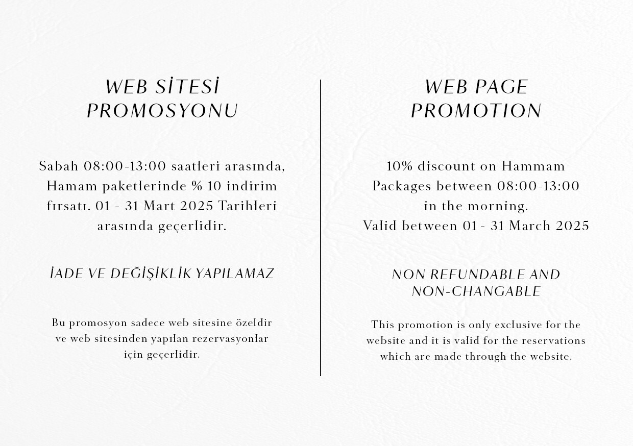 In the heart of history, a bathhouse splendor that has endured since 1556... You are invited to a unique experience where tradition meets elegance at the Hürrem Sultan Hammam A renewal worthy of Sultans awaits you Make a reservation prior to your visit
